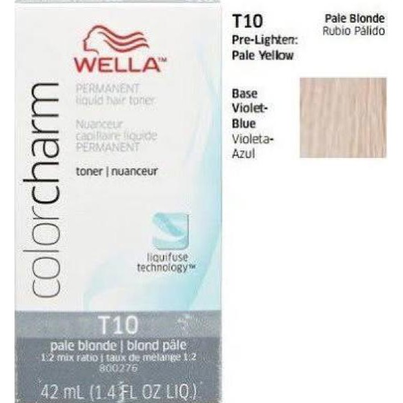 Wella color charm permanent liquid hair toner delivers vibrant color that is exceptionally fade resistant. Permanent liquid Hair Color. Say hello to the Wella T10 Pale Blonde Toner.